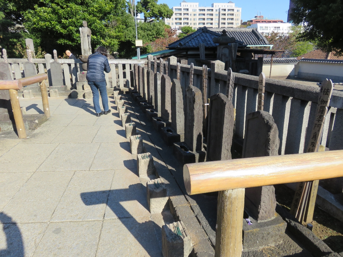 泉岳寺のずらっと並んだ赤穂義士の墓(2019/11/21) |