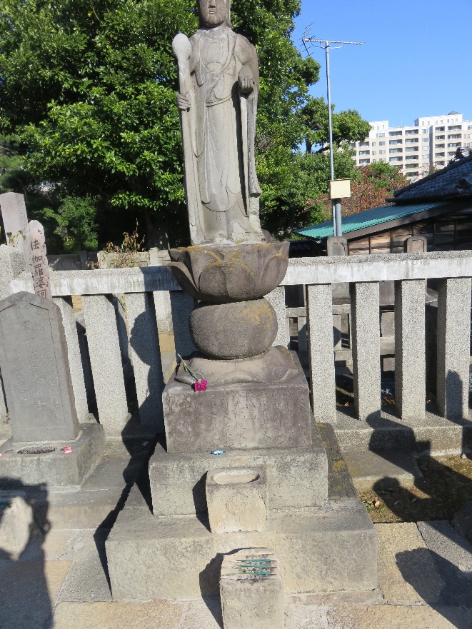 泉岳寺の赤穂義士の三回忌に建立した地蔵尊と左側の大石瀬左衛門信清の墓(2019/11/21) |
