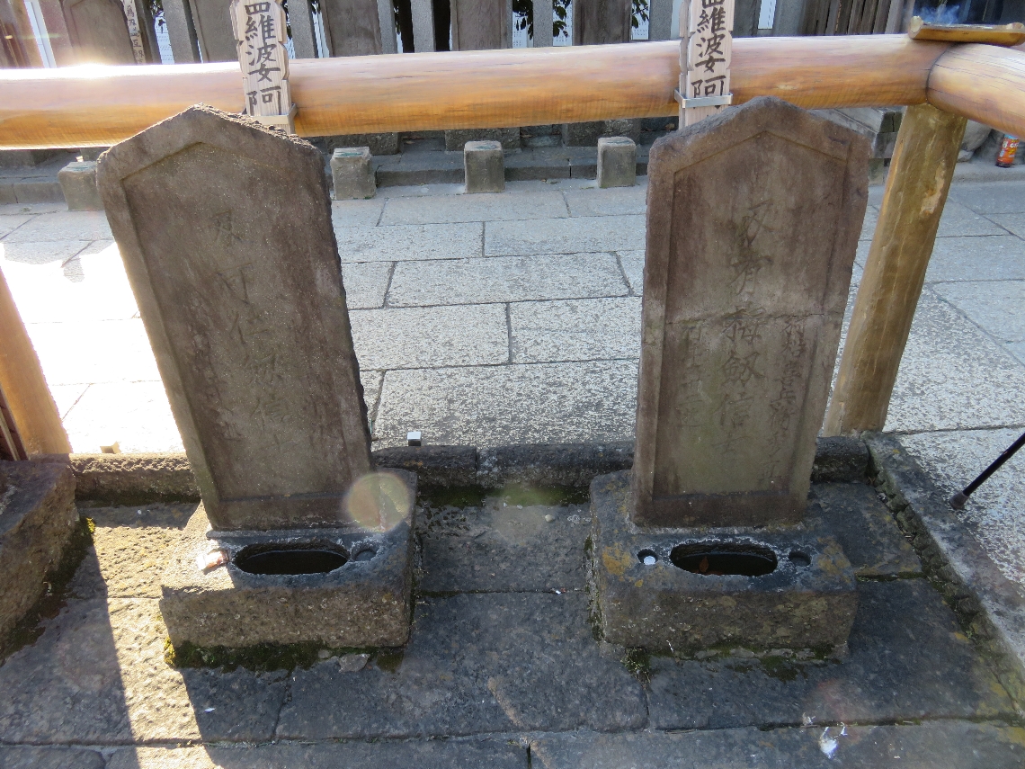泉岳寺の赤穂義士の墓・・・右は大石瀬左衛門信清の墓でその左は矢田五郎右衛門助武の墓(2019/11/21) |