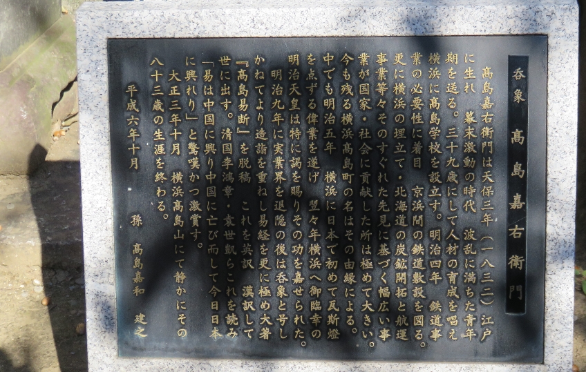 泉岳寺の高島嘉右衛門の墓碑の説明版(2019/11/21) |