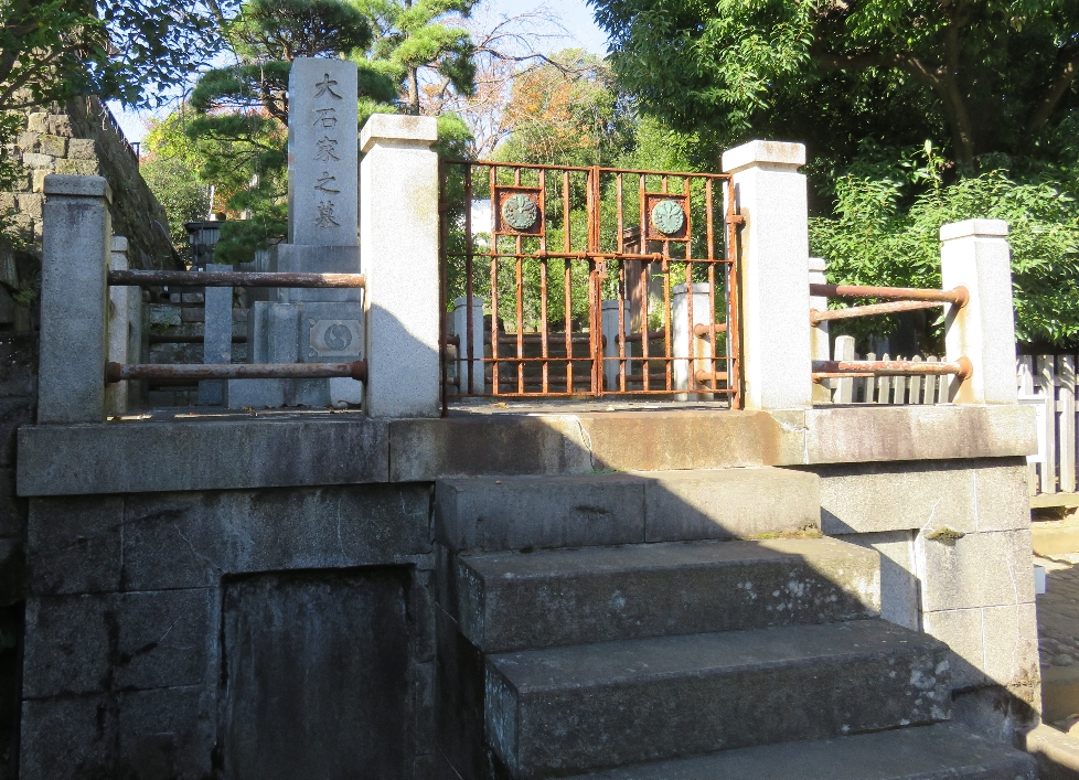 泉岳寺の大石家の墓・・・・・赤穂義士墓とは別に、良欽・良昭と良恭から大石家最後の当主・多久造まで歴代の墓がある。(2019/11/21) |