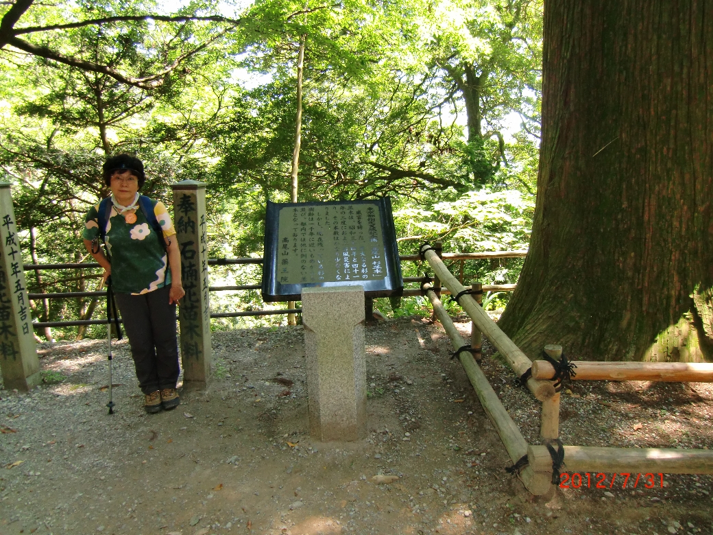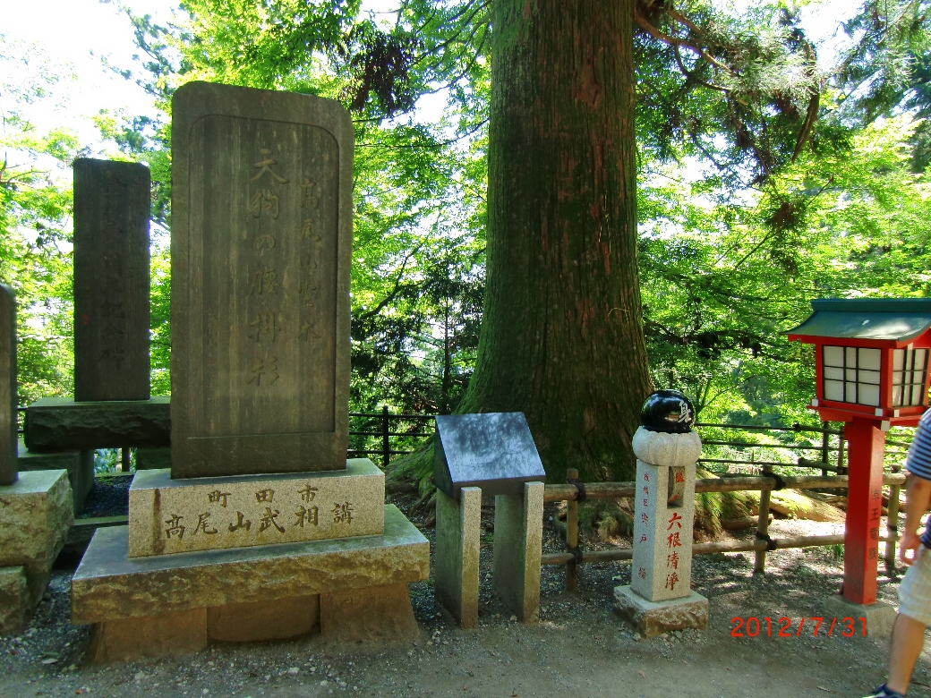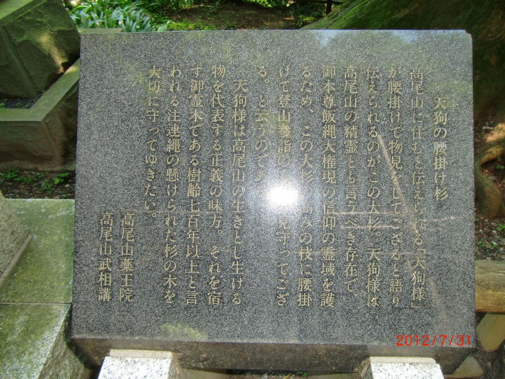 高尾山の天狗の腰掛け杉の説明版(2012/7/31) |