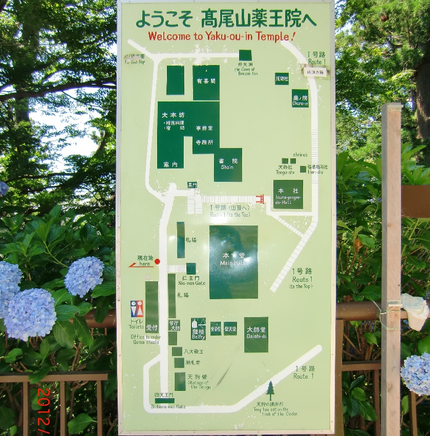 高尾山の薬王院の境内案内図(2012/7/31) |