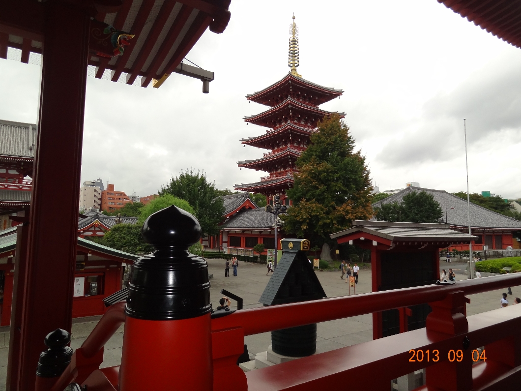 | 浅草の浅草寺の宝蔵門(仁王門)を本堂から撮った写真 (2013/9/4) | |