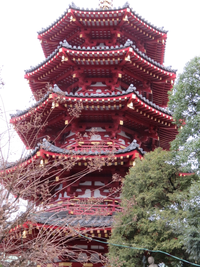 川崎大師の大本堂への石段と右後ろにあるのは八角五重塔とその左側の経蔵(2024/1/20) |