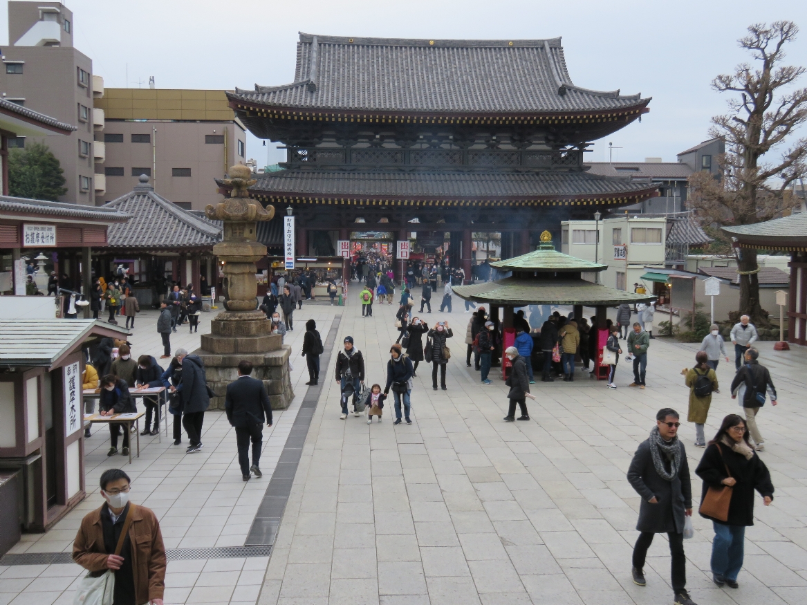 川崎大師の大本堂から大山門を振り返る(2024/1/20) |