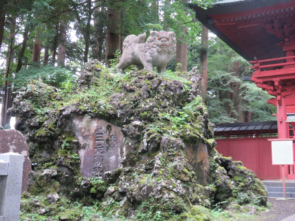 東口本宮冨士浅間神社の神門(楼門)の前の左の富士塚の狛犬(2020/9/20) |