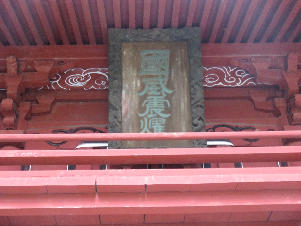 東口本宮冨士浅間神社の神門(楼門)に掲げられている額(扁額「國威震燿」は日清戦争の戦勝と兵士の健康を祈念し、