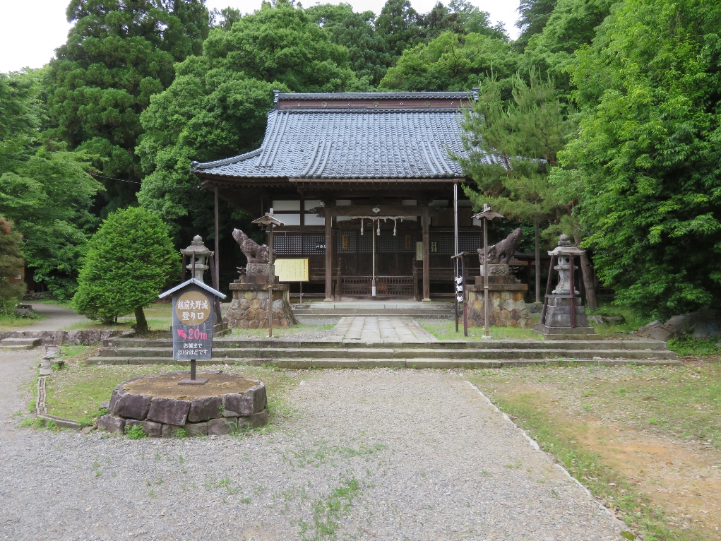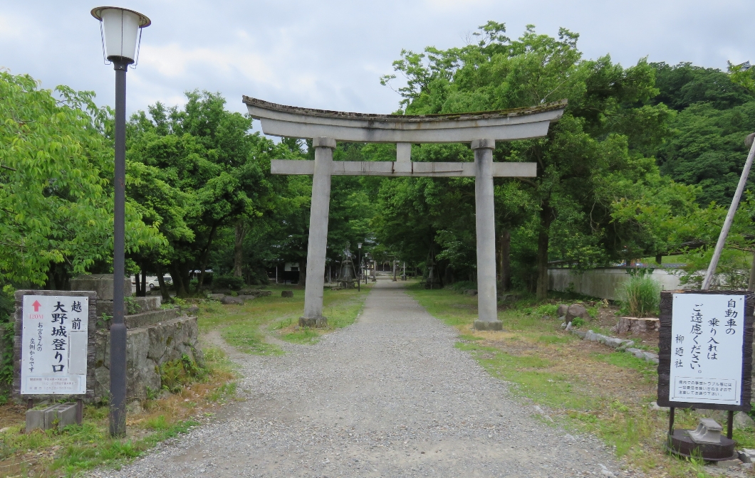 越前大野城の登り口にある幕末の大野藩主土井利忠公が祀られている柳廼社(2025/5/31) |