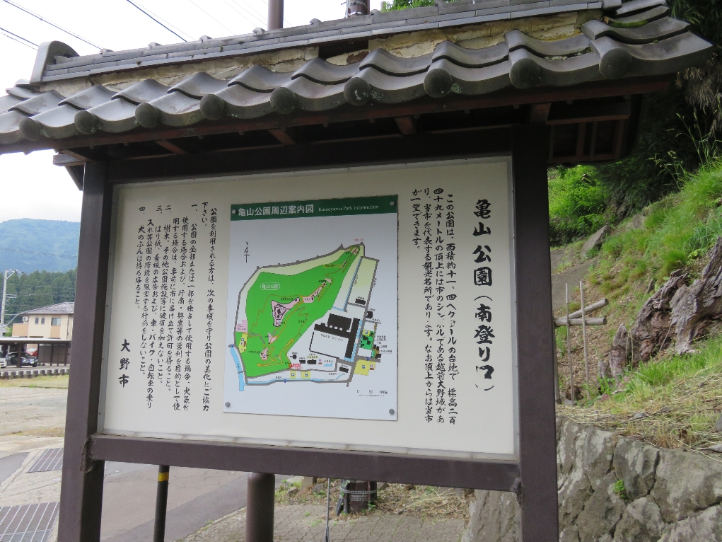 越前大野城の南登り口にある案内板(2025/5/31) |