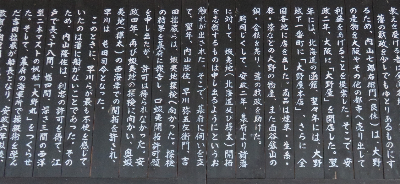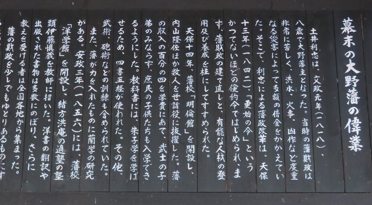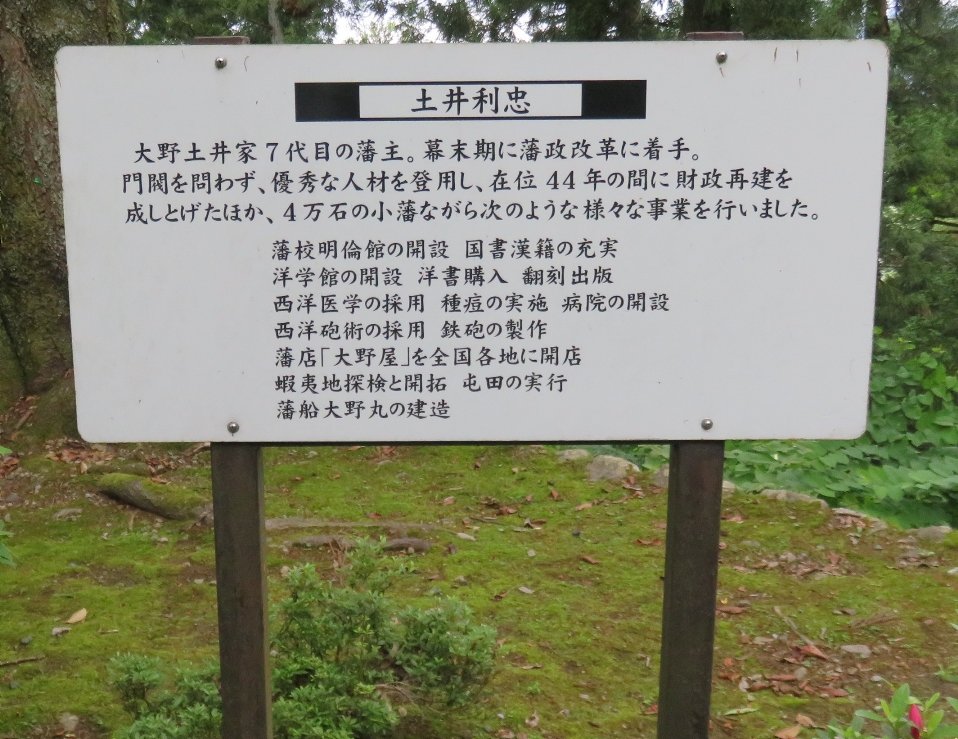 越前大野城の南登り口から中腹にある幕末の大野藩主土井利忠公の説明版(2025/5/31) |