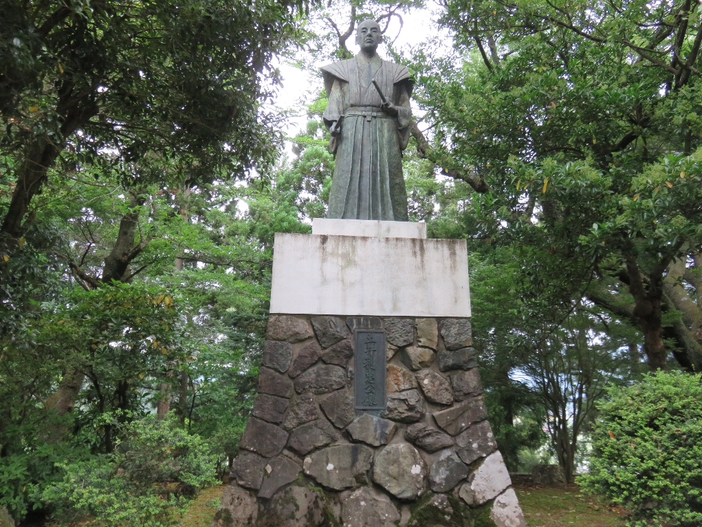 越前大野城の南登り口から中腹にある幕末の大野藩主土井利忠公像(2025/5/31) |