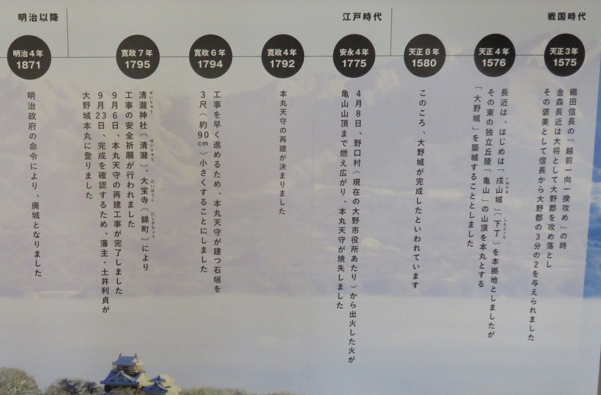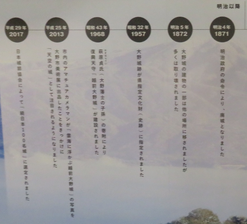 越前大野城の天守閣の内部の展示物の越前大野城の歴史(2025/5/31) |