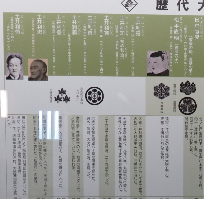 越前大野城の天守閣の内部の展示物の歴代大野城主(2025/5/31) |