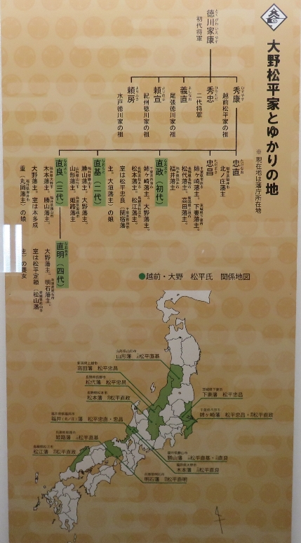越前大野城の天守閣の内部の展示物の大野松平家とゆかりの地(2025/5/31) |