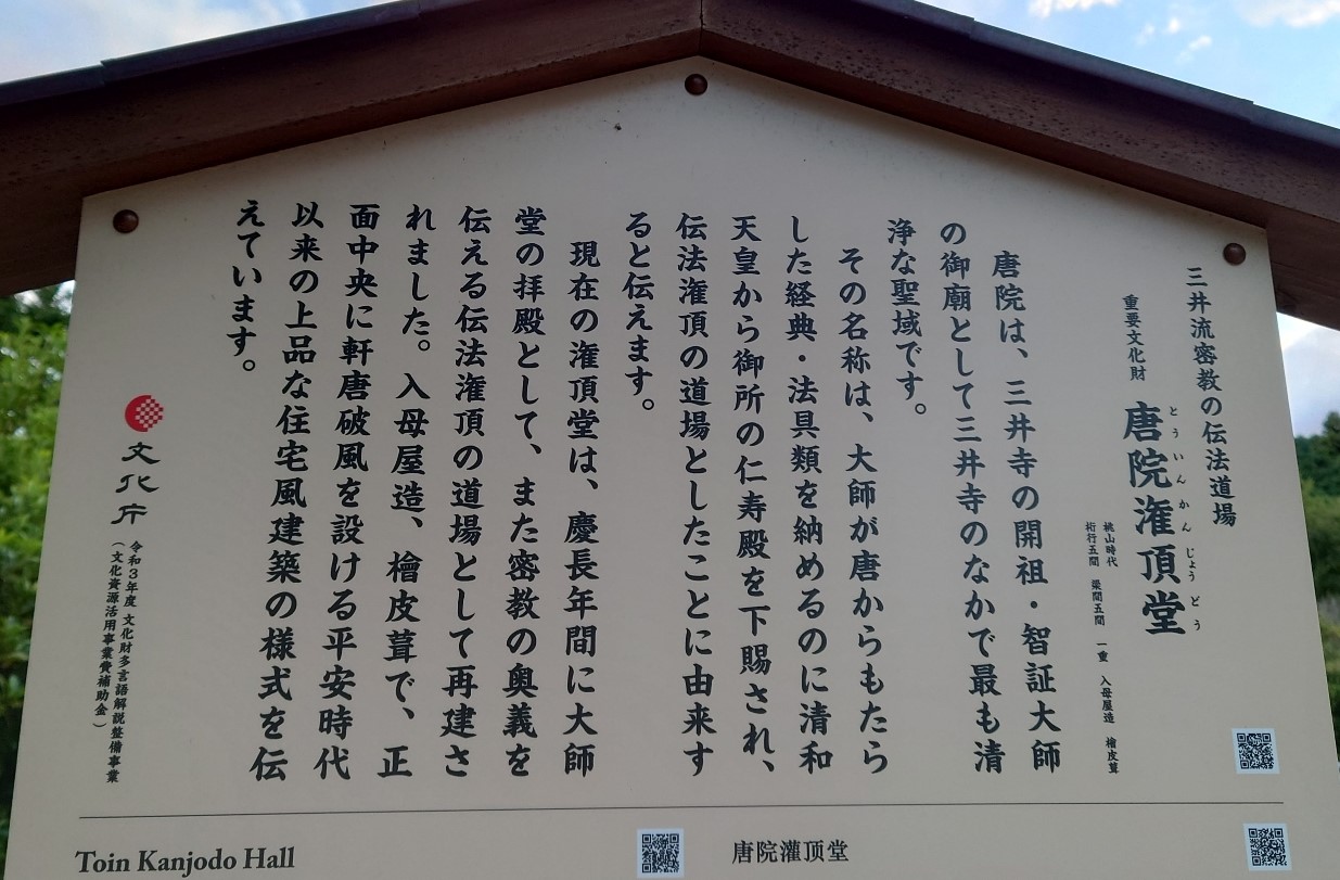 三井寺の唐院灌頂堂の説明版(2022/10/24) |