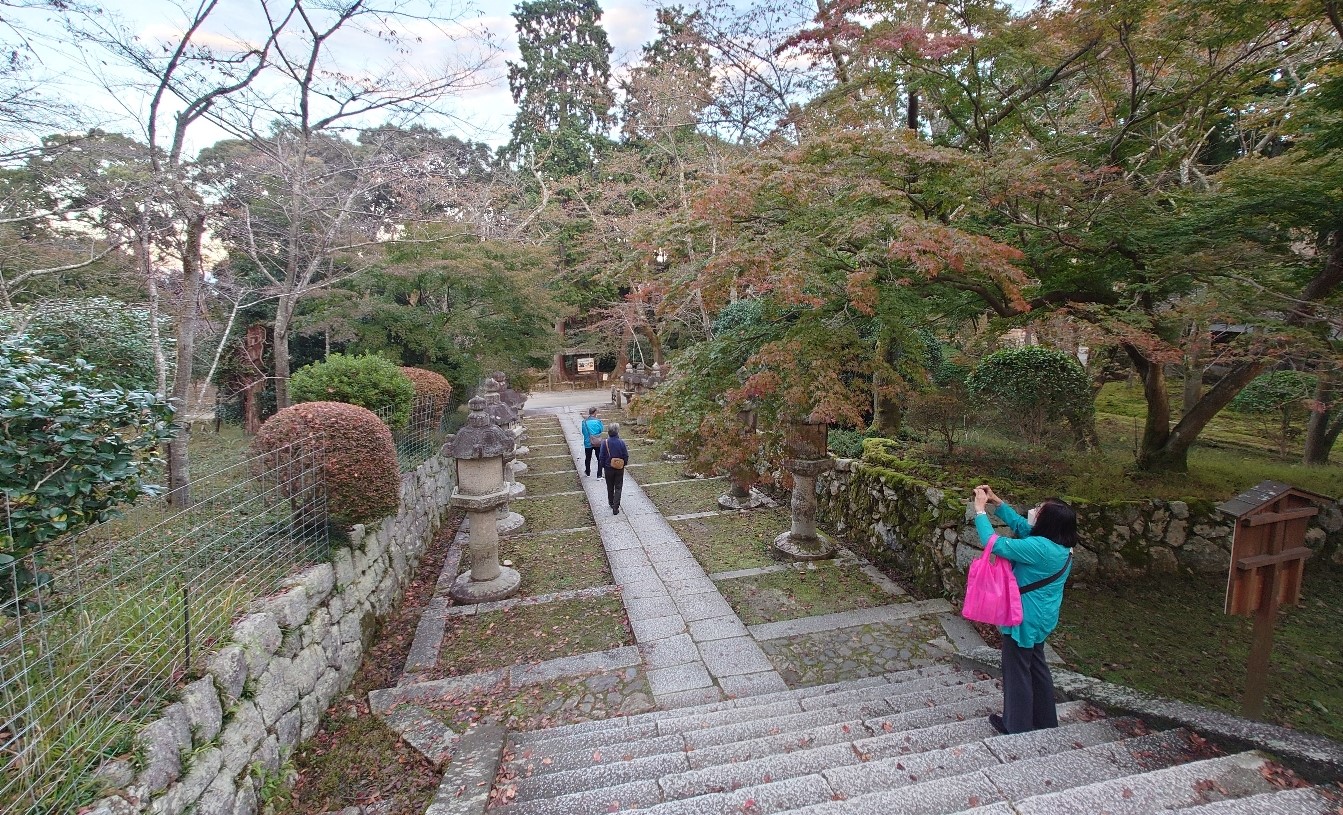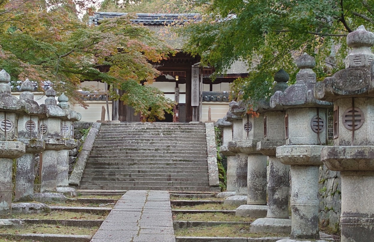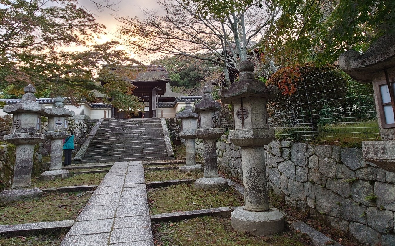 三井寺の唐院四脚門の前の灯籠がある参道(2022/10/24) |
