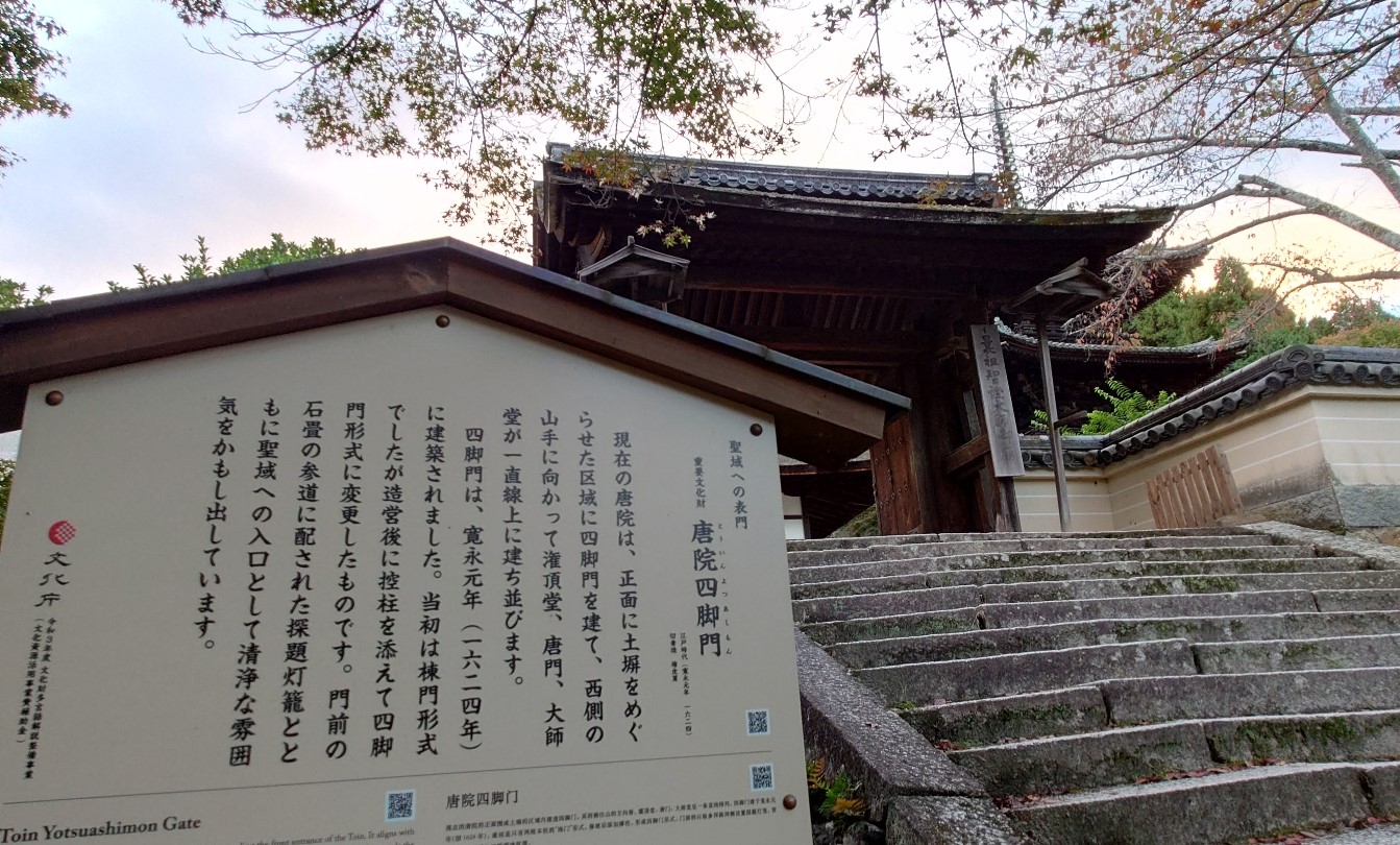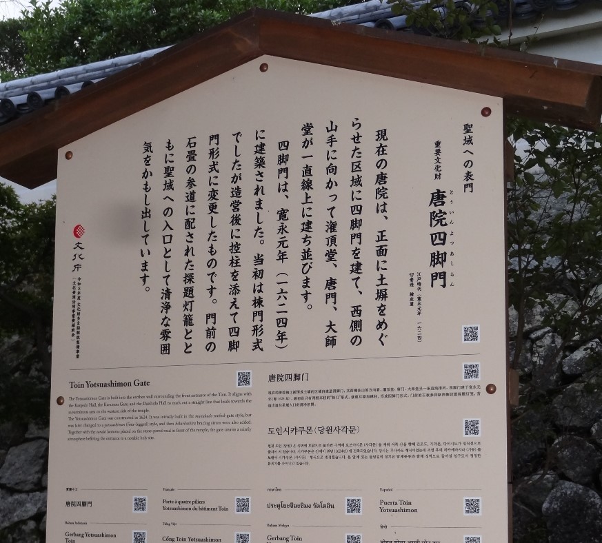 三井寺の唐院四脚門の説明版(2022/10/24) |
