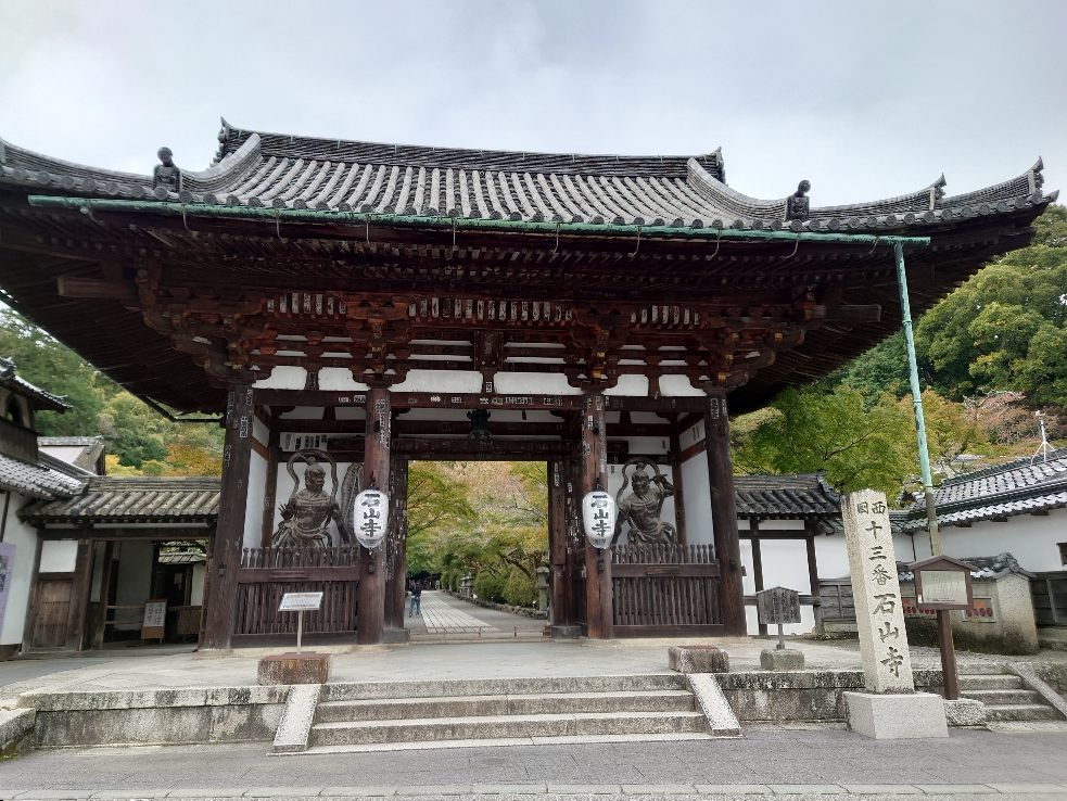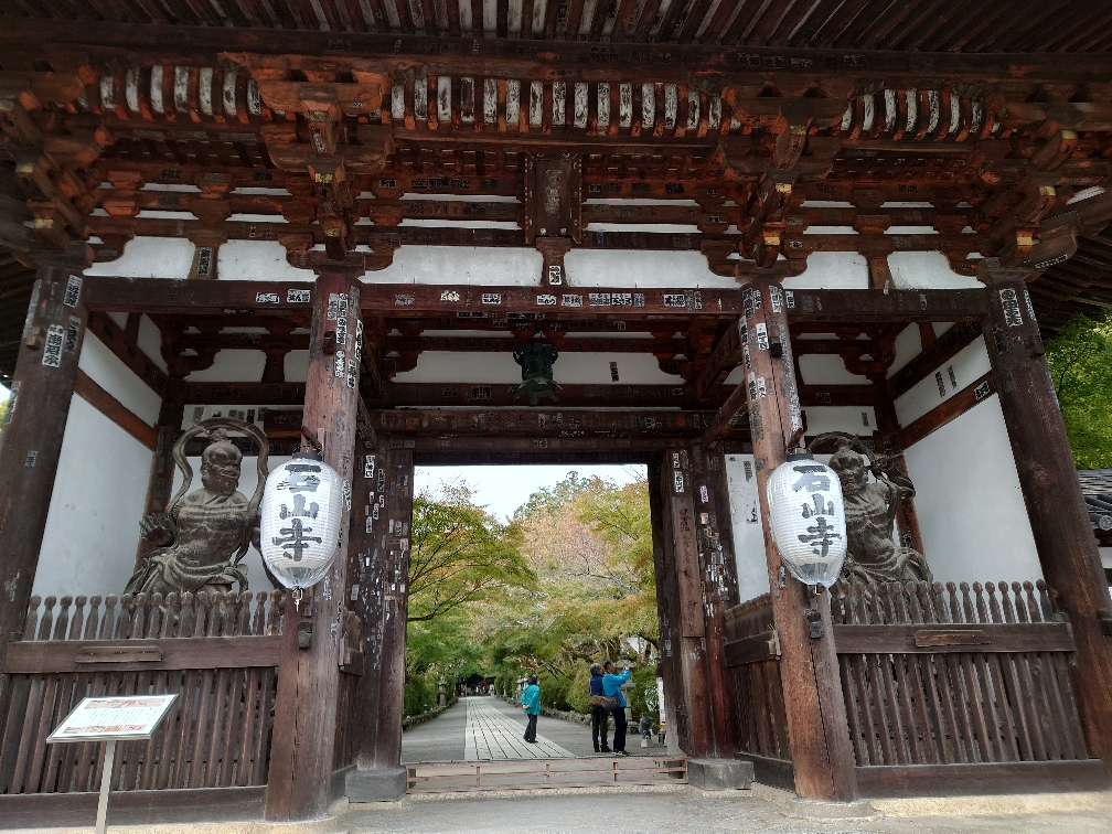 ●重文の東大門・・・石山寺の入り口には、立派な東大門(ひがしだいもん)がそびえています。鎌倉時代の1190年に源頼朝(みなもとのよりとも)の寄進による建立で、重要文化財に指定されています。東大門に安置される仁王像は、鎌倉期の仏師・運慶と息子の湛慶の作と伝えられています。