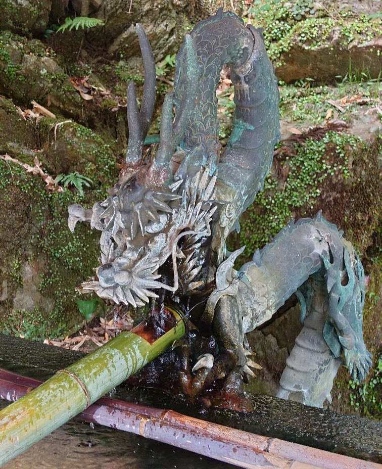 石山寺の東大門からの参道の受付からすぐの手水舎(2022/10/27) |