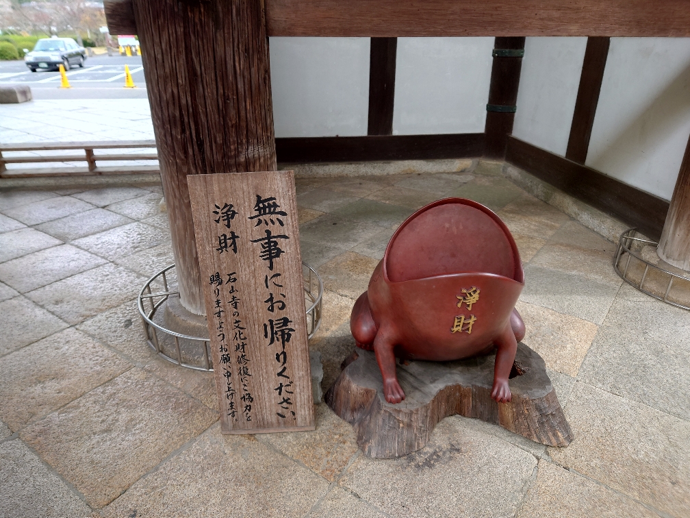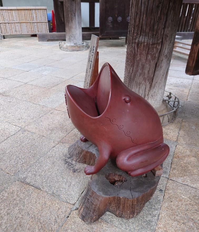 石山寺の東大門のカエルの置物(2022/10/27) |