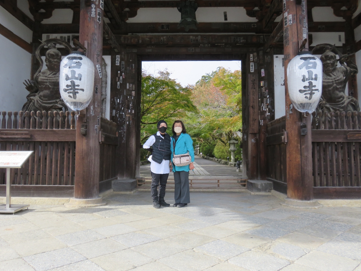 石山寺の本堂下の硅灰石の巨岩の前(2022/10/27) |