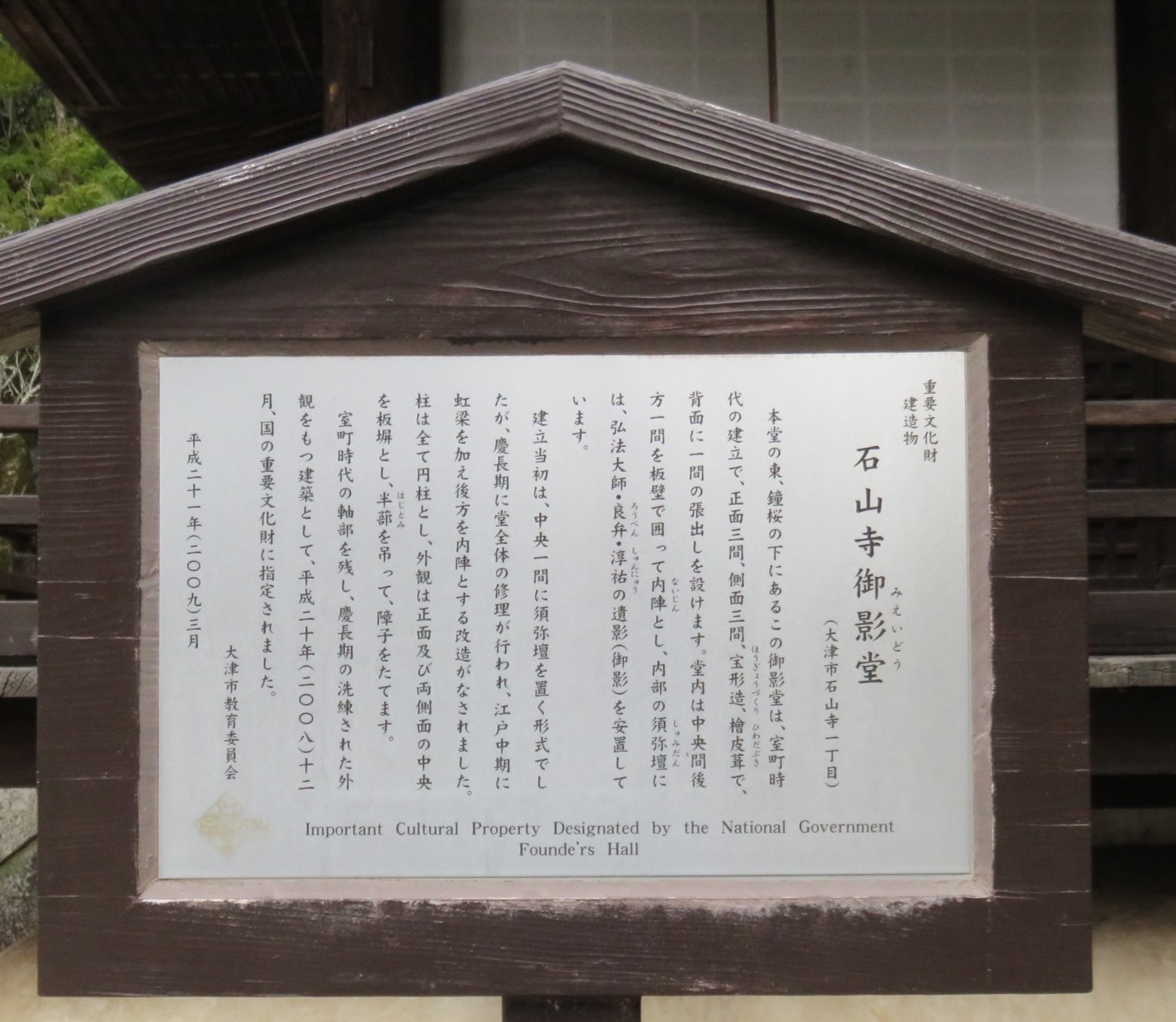 石山寺の本堂下の御影堂の説明版(2022/10/27) |