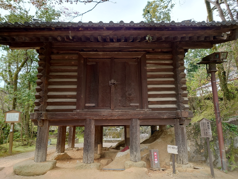 石山寺の経蔵とその床下の安産の腰掛石(2022/10/27) |