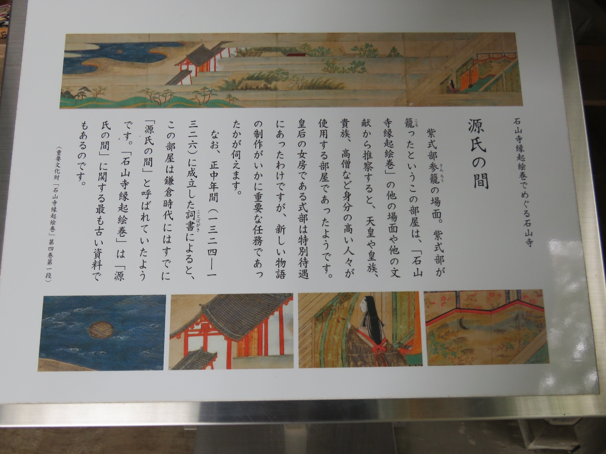 石山寺の本堂の紫式部が源氏物語を執筆したと伝わる「源氏の間」の説明版(2022/10/27) |
