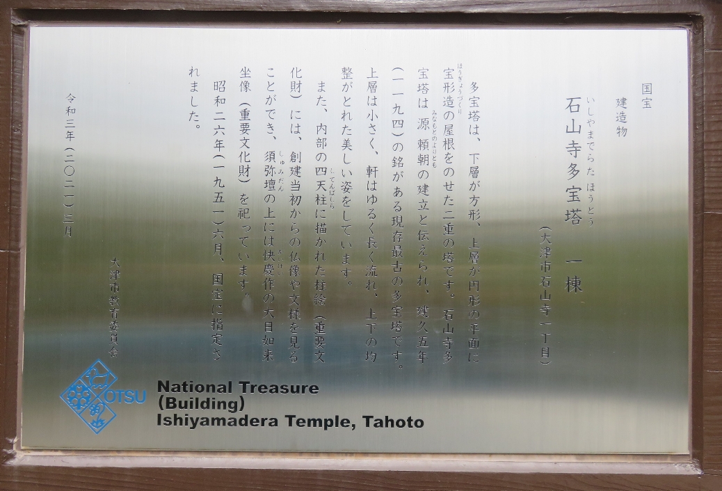 石山寺の国宝の多宝塔の説明版)(2022/10/27) |