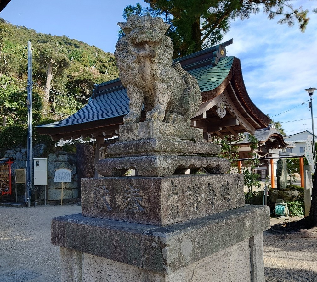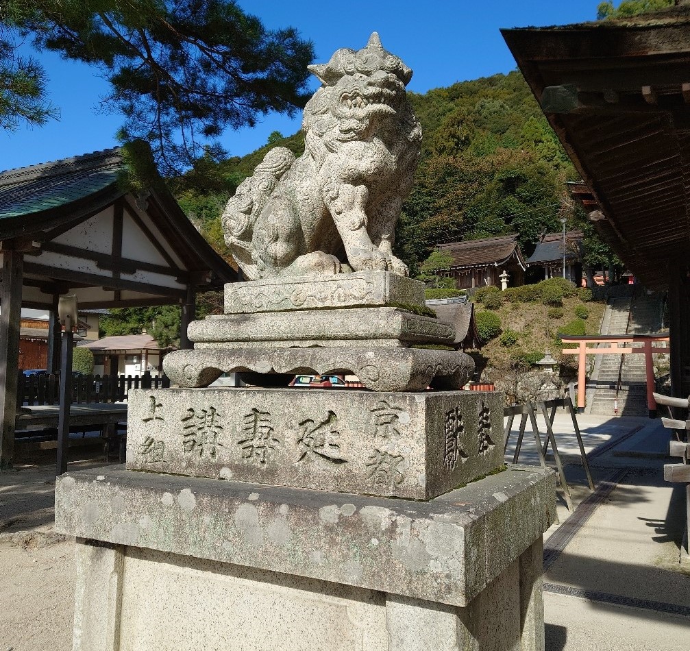 白髭神社の狛犬と手水舎と拝殿と本殿と右手の与謝野夫妻の歌碑(2022/10/25) |