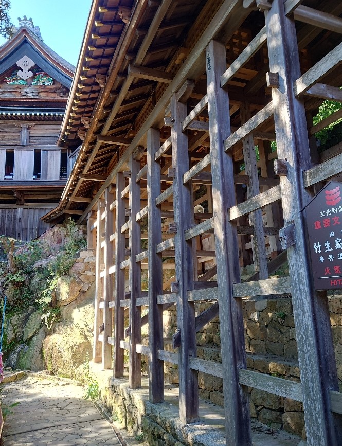 竹生島の船廊下の土台は京都の清水寺のような懸造りの構造になっている。(2022/10/25) |