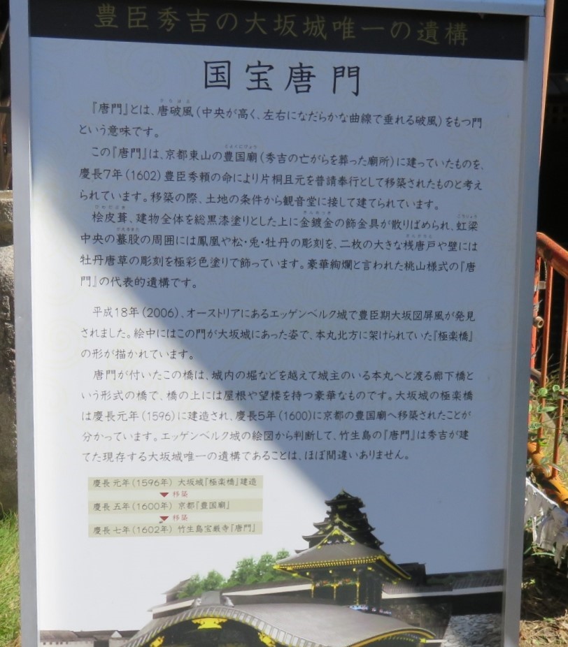 竹生島の国宝の唐門の説明版(2022/10/25) |