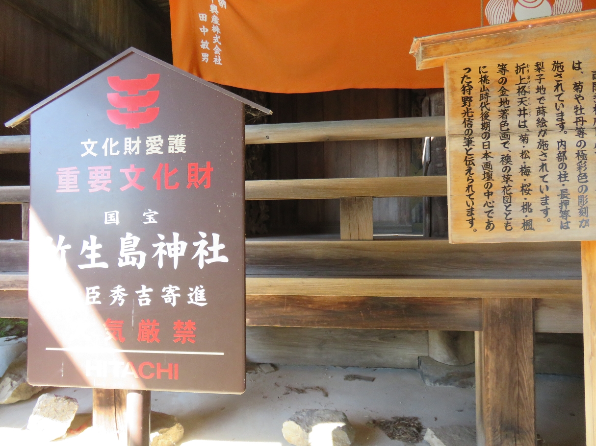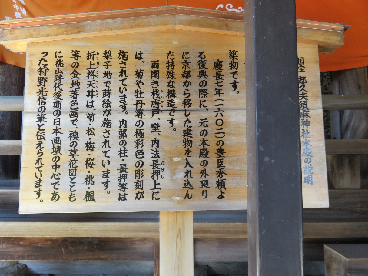 国宝の竹生島神社(都久夫須麻神社本殿・つくぶすまじんじゃほんでん)の説明版(2022/10/25) |