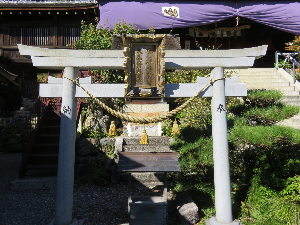 国宝の竹生島神社本殿(都久夫須麻神社本殿)下の天忍穂耳命(あめのおしほみみのみこと・・・あまてらすおおかみの子で神武天皇の高祖父)と大己貴命(おおなむちのみこと・・・おおくにぬしのみことの事)を祀る神社(2022/10/25) |