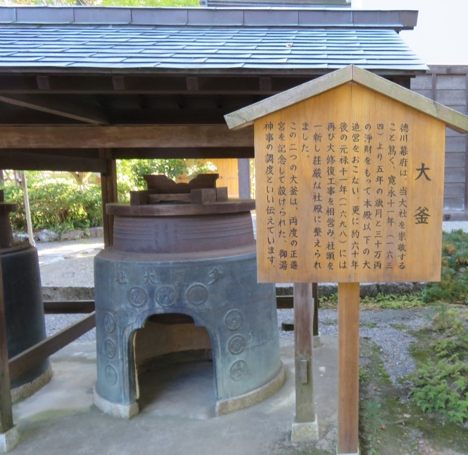 多賀大社の2つの大釜と説明版(2022/10/26) |
