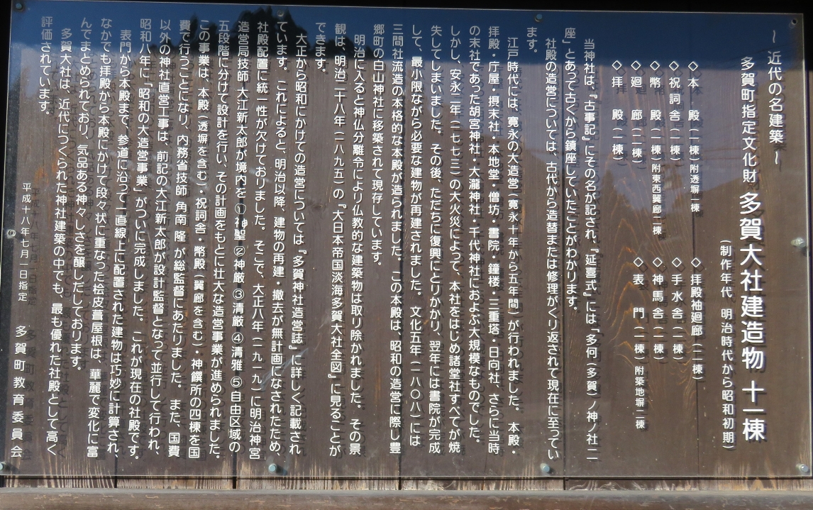 多賀大社の建造物の説明版(2022/10/26) |