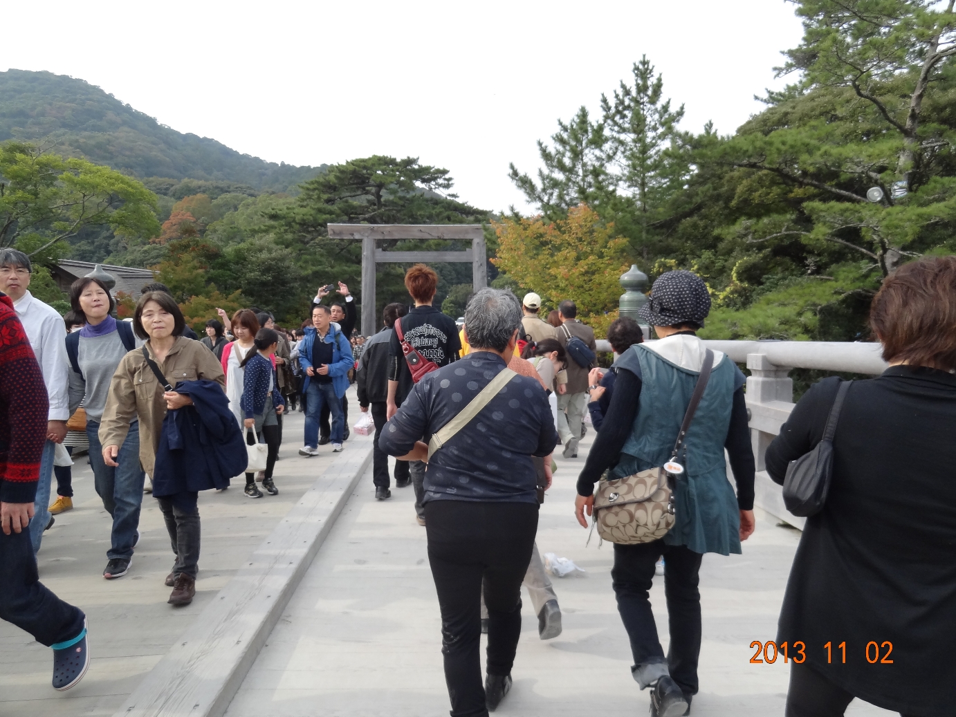 伊勢神宮の内宮への入口の五十鈴川にかかる宇治橋(神宮の表玄関)(2013/11/2) |