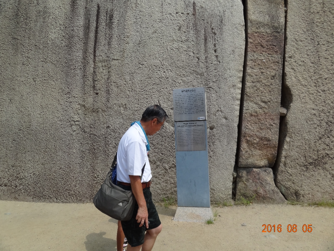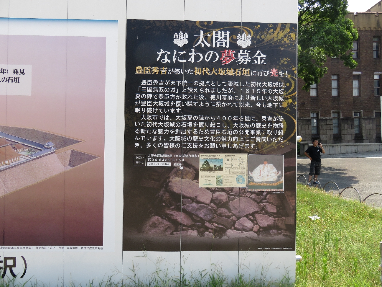 大阪城の桜門を入った処の石垣の内の巨石で「蛸石」と呼ばれている(2016/8/6) |