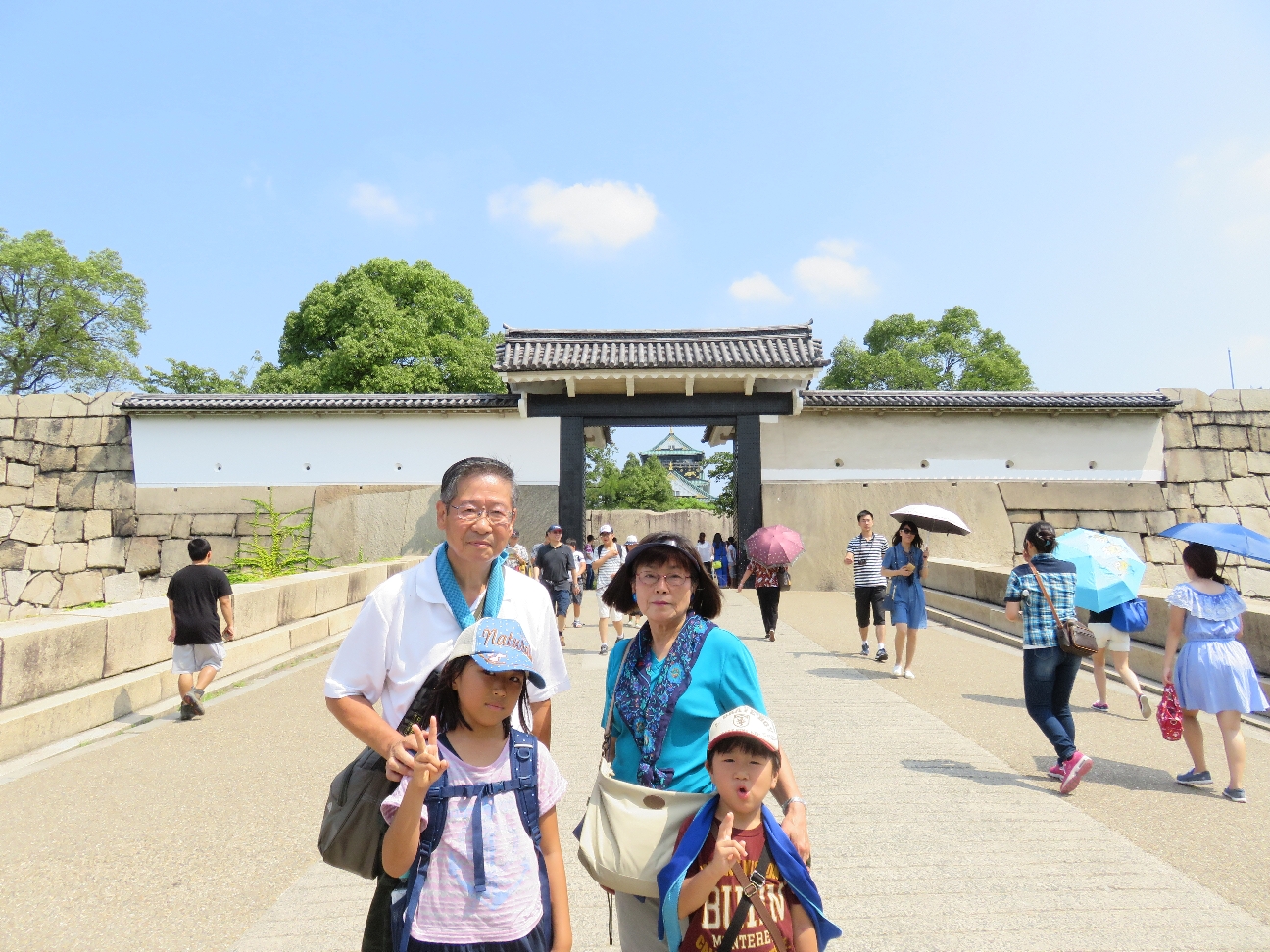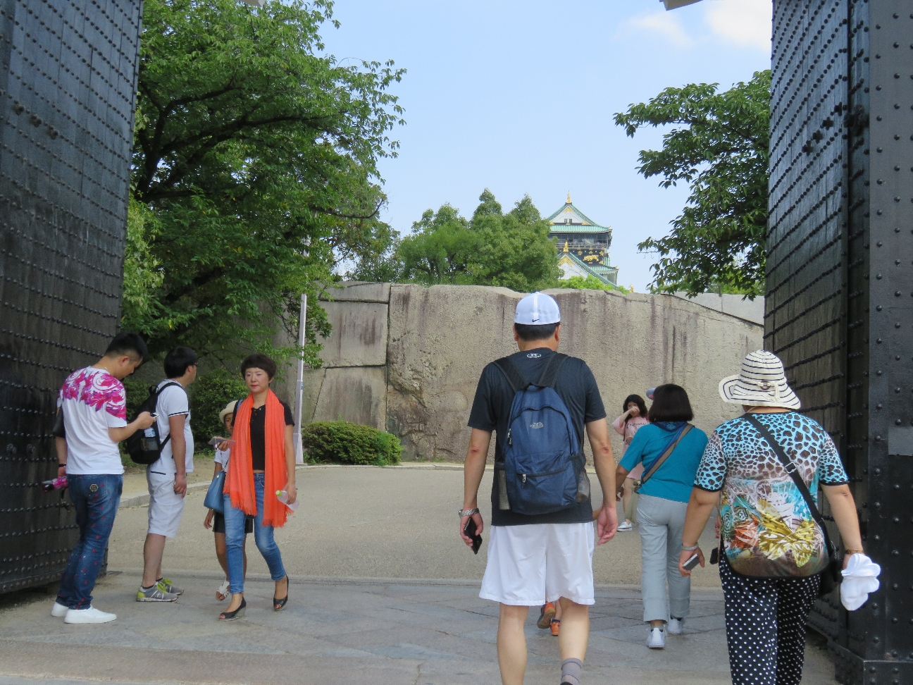 大阪城の桜門(二の丸から本丸に入るための門。門の両脇に見える巨石は龍虎石と呼ばれている)(2016/8/6) |