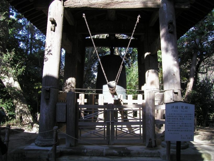 | 円覚寺の国宝の洪鐘。北条貞時が蒙古襲来の時、国家の安泰と民の幸せを願って寄進したといわれる(2005/12/10) | |
