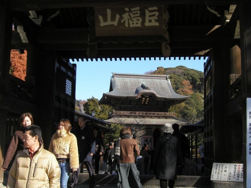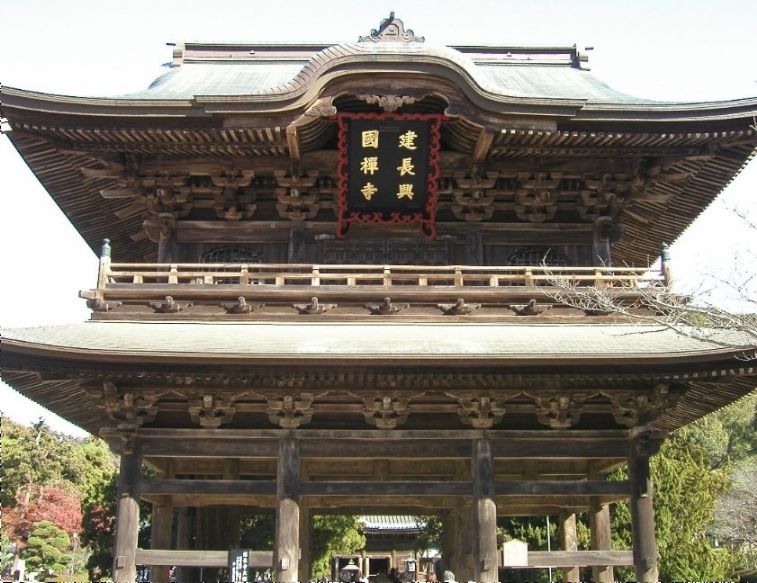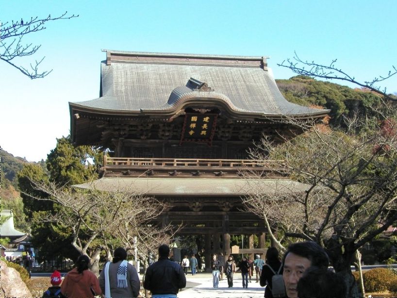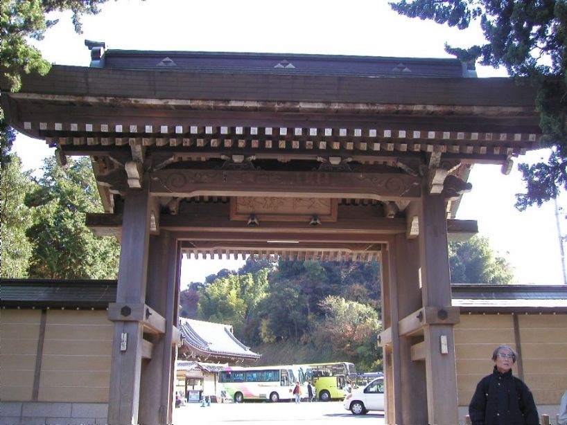 | 建長寺の総門の額。第十代住職一山一寧の筆。巨の字に余分な点が加わって百貫分の価が加わったとされ、「百貫点」と呼ばれている。 2005/11/10 | |