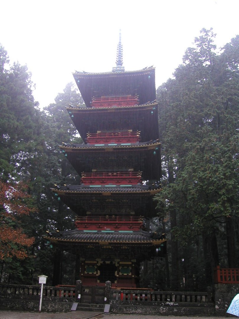 | 雨の中の日光の東照宮の中の若狭国小浜藩主酒井忠勝が1650年にの寄進した五重の塔 2003/11/29 |