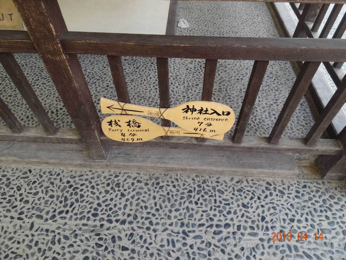 宮島の世界一の大杓子のところにある道案内(2013/4/14) |