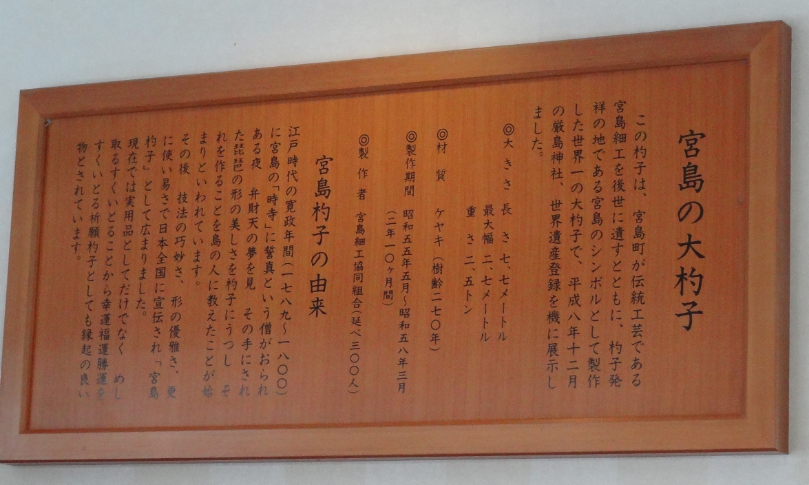 宮島の世界一の大杓子の説明版(2013/4/14) |