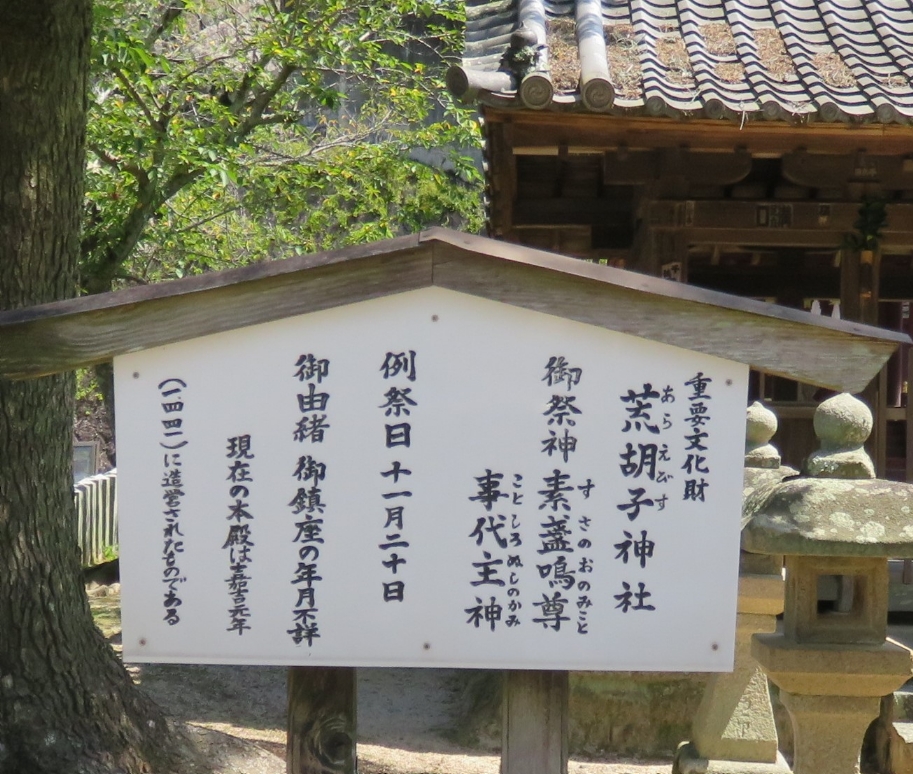 宮島の荒胡子神社の説明版(2024/8/3) |