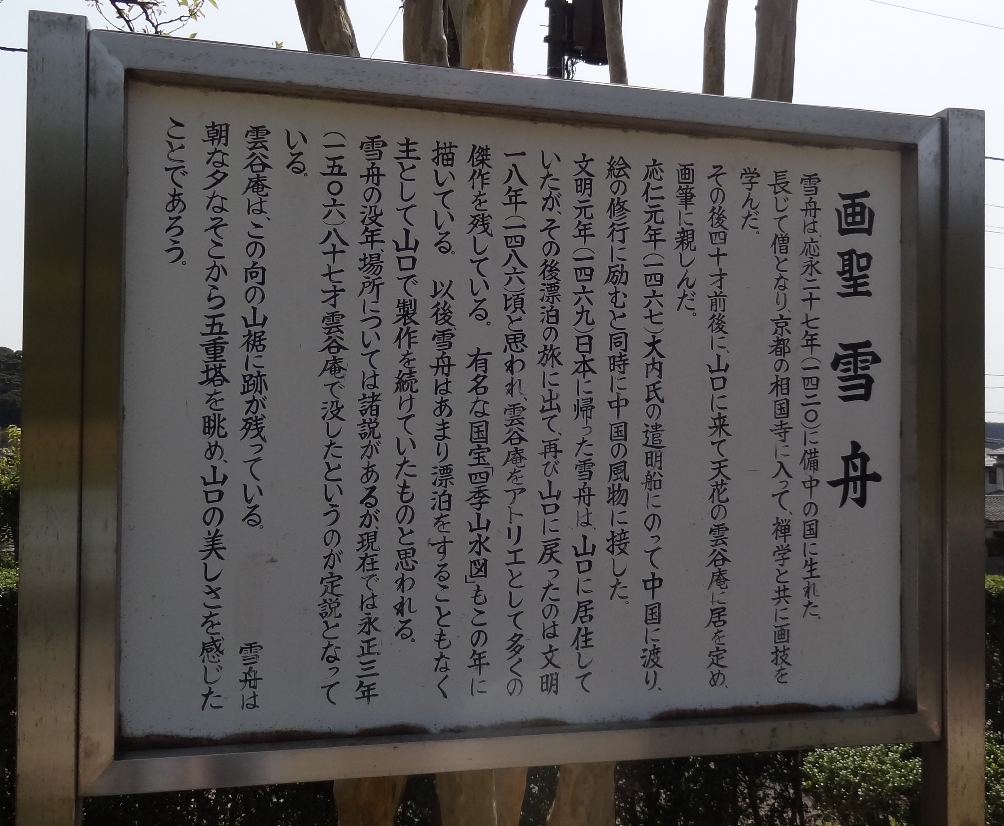 瑠璃光寺のそばの香山公園の雪舟の胸像のそばの説明版(2013/4/15) |