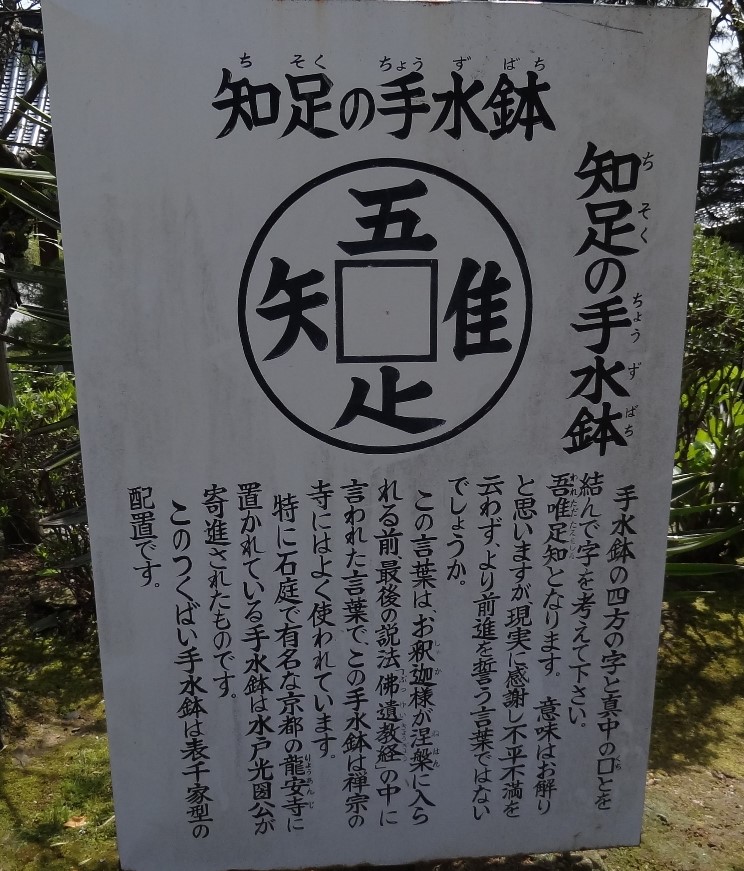 瑠璃光寺の知足の手水鉢の説明版(2013/4/15) |