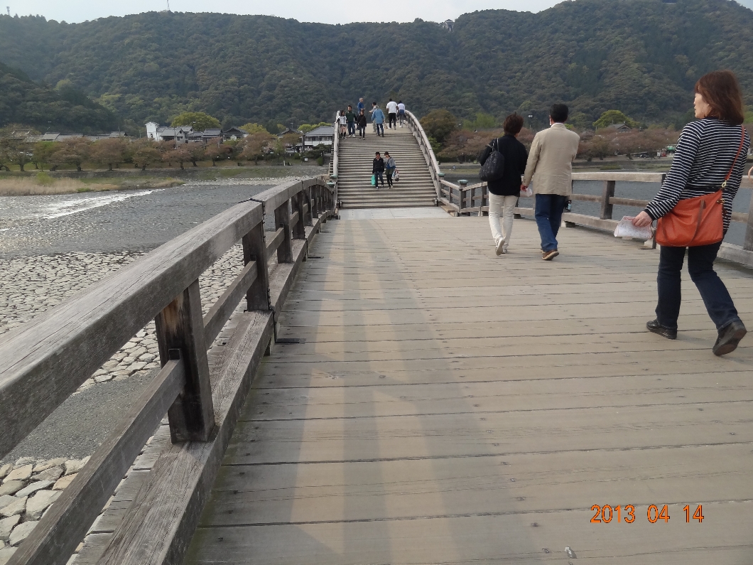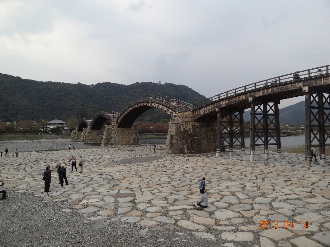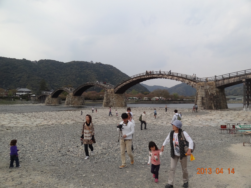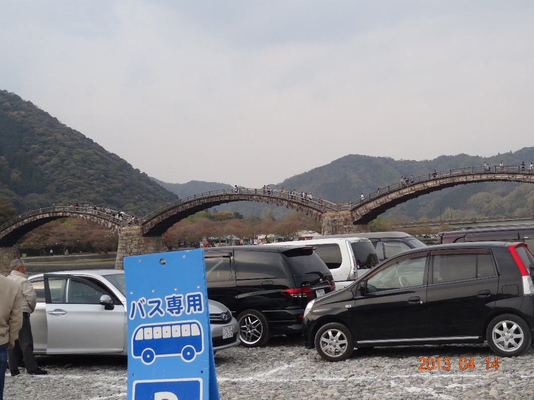 錦帯橋の河原の駐車場から錦帯橋を撮る(2013/4/14) |