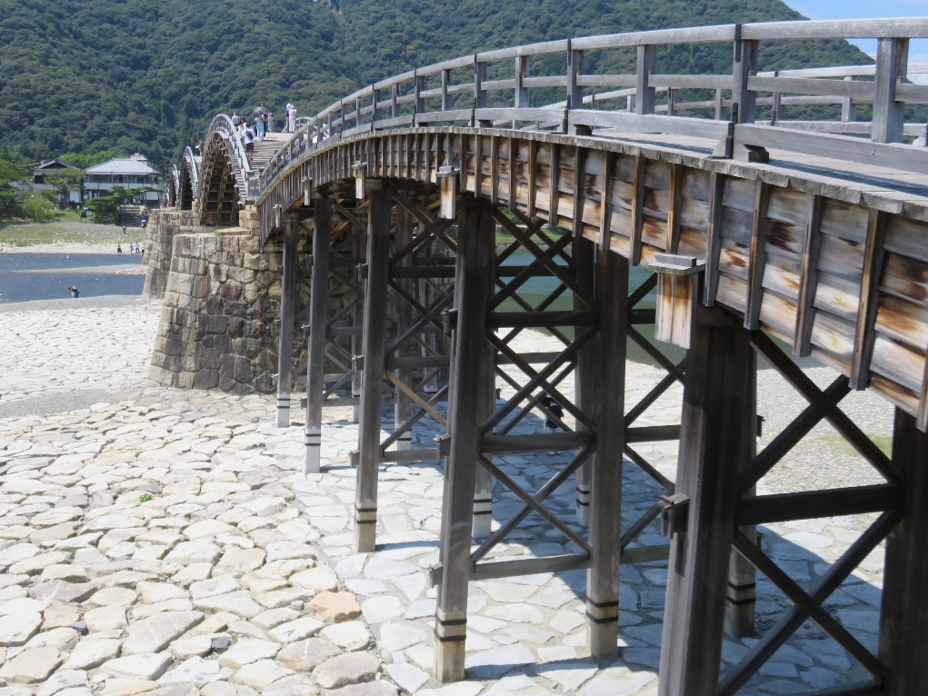 延宝元(1673)年、岩国3代藩主の吉川広嘉(きっかわひろよし)が木造橋を架けましたが、錦川の洪水によりすぐに流失しました。